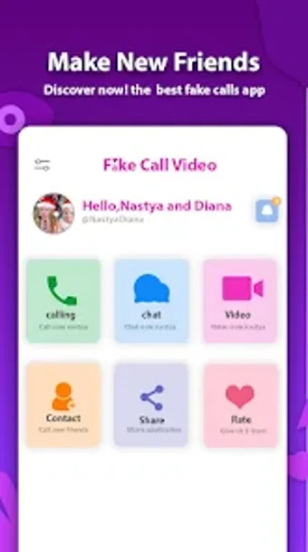 Call with Nastya and Diana to aplikacja na platformę Android, która pozwala użytkownikom na symulację rozmów telefonicznych z popularnymi postaciami, takimi jak Nastya i Diana. Stworzona z myślą o fanach, aplikacja oferuje możliwość nawiązywania fałszywych połączeń, co sprawia, że jest idealna do zabawy i żartów z przyjaciółmi. Użytkownicy mogą korzystać z funkcji wideo, aby symulować rozmowy wideo oraz czaty, co dodaje element interakcji z idolami.